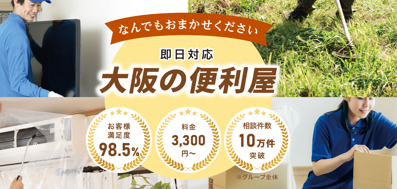 大阪の便利屋王子は暮らしのお困りごとをなんでも解決いたします。大阪府の全域に対応し、不用品回収や引越し、草刈りや家具移動などのお悩みを町の便利屋が解決いたします。お見積り無料!